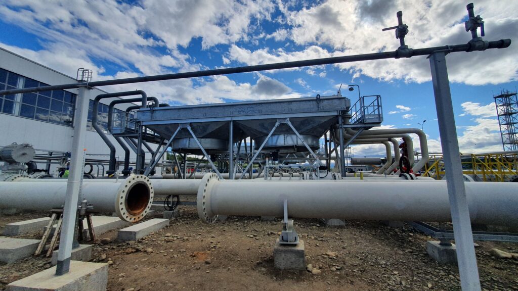 In order to extend the exploitation period of the wells and to increase the final recovery factor of the field, the pressure in the gas gathering system had to be lowered to values lower than the pressure in the national transmission system managed by Transgaz. The compensation of this pressure difference involved the construction of a compression station to suck the gas from the gathering system and to deliver it to the Harlesti Gas Drying Station.